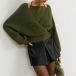 This sophisticated sweater features striking halter neck styling with dramatic batwing construction and innovative mock two-piece design for contemporary layered elegance.Wanna have a try?