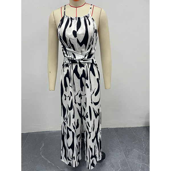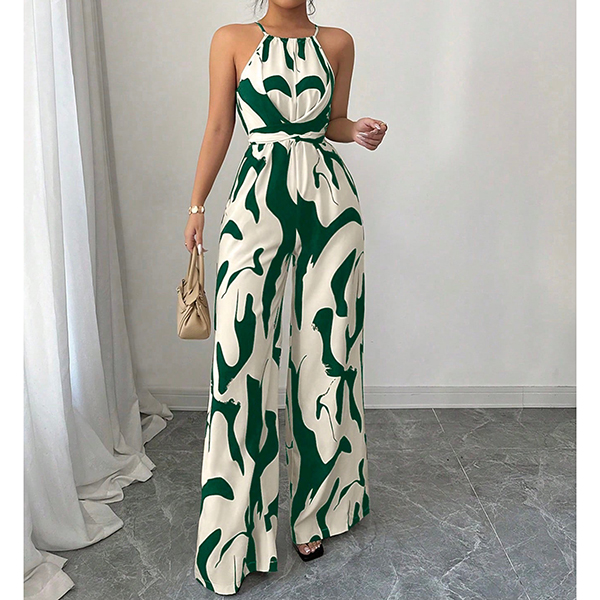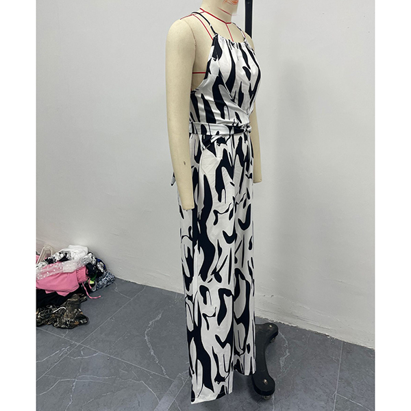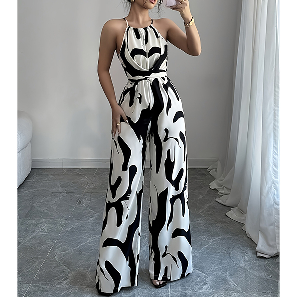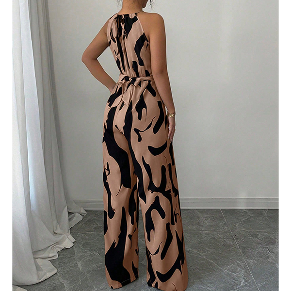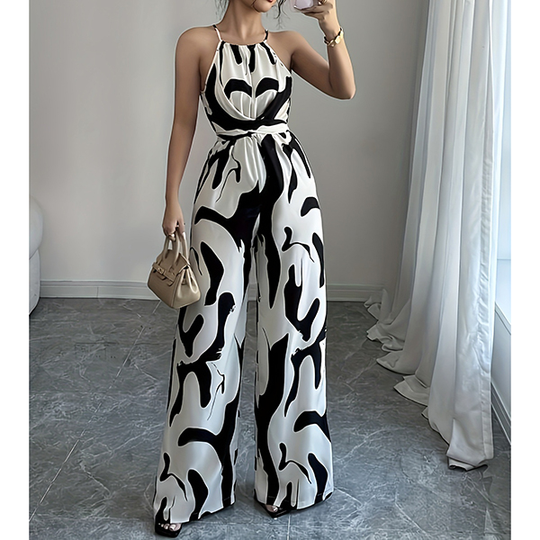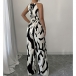 Fashion Halter Neck Cow Print Wide-leg Jumpsuit