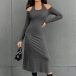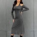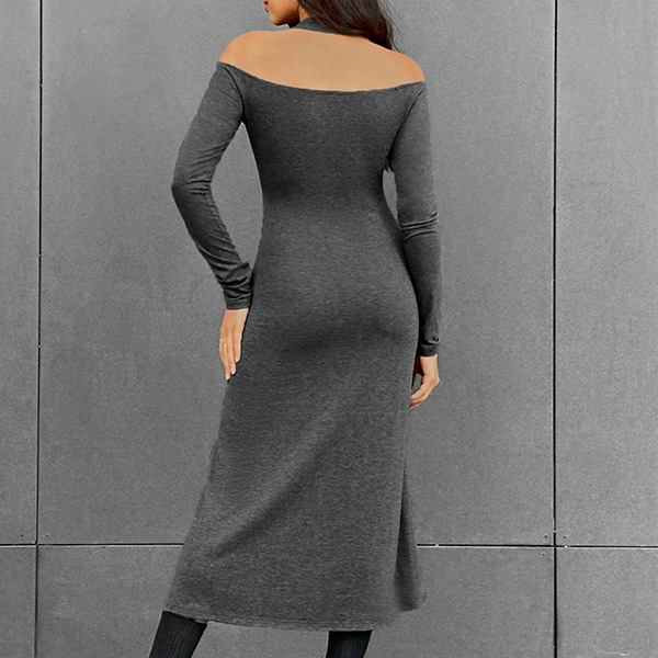Fashion Halter Neck Open-shoulder Long Sleeve Bodycon Dress