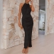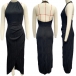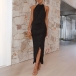 Fashion Halter Neck Sleeveless Irregular Slit Hemline Dress