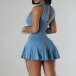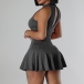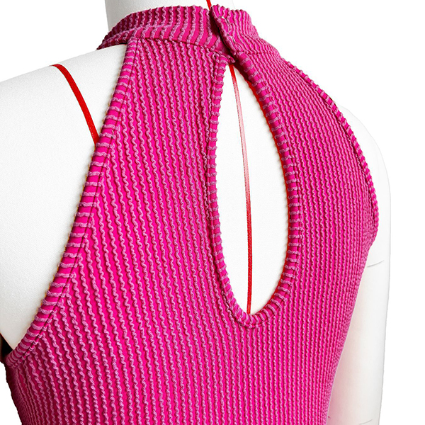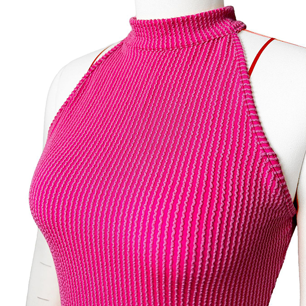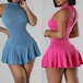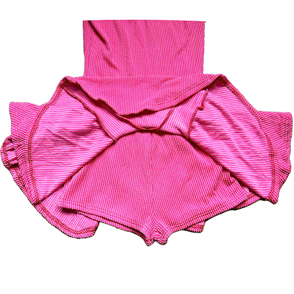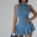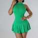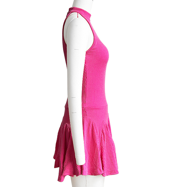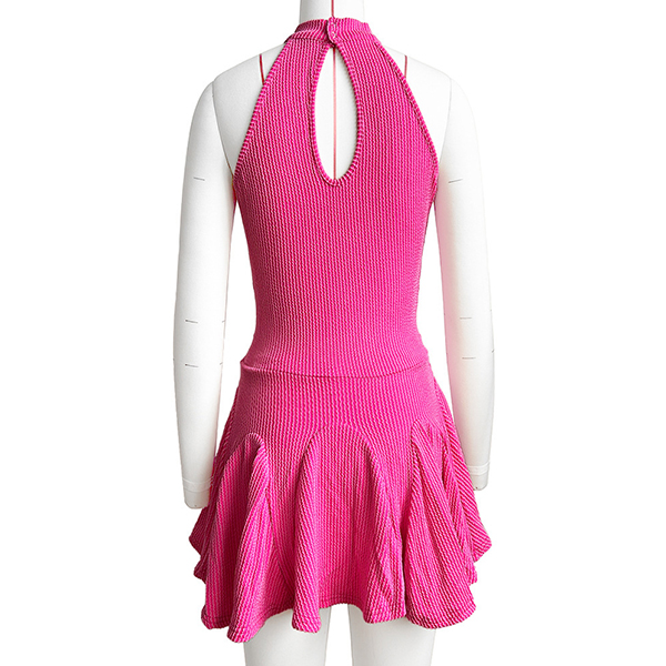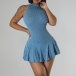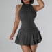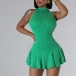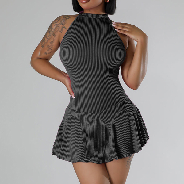 Fashion Halter Neck Sleeveless Ruffle Hemline Ribbed Dress with Inner Shorts