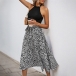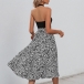 Fashion Halterneck Backless Sleeveless Leopard Printed Spliced Dress