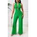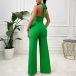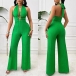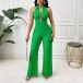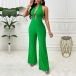 Look at this green jumpsuit ! It features a sexy front cutout, halterneck, backless and wide-leg design.It is a chic and stylish piece that exudes sophistication and glamour.