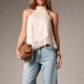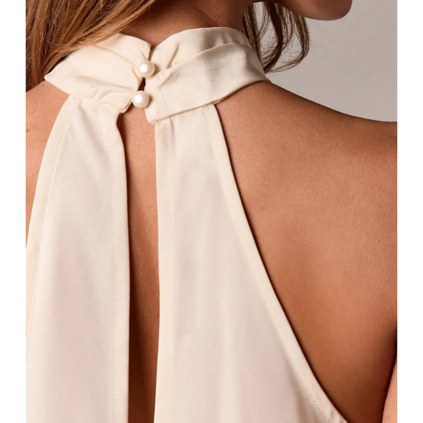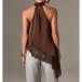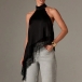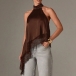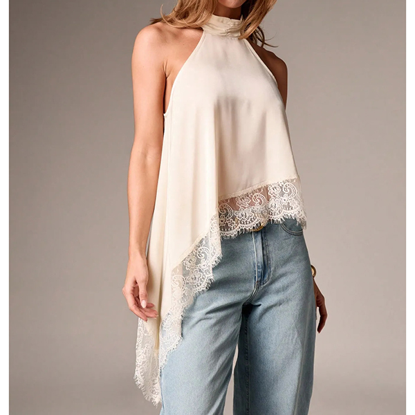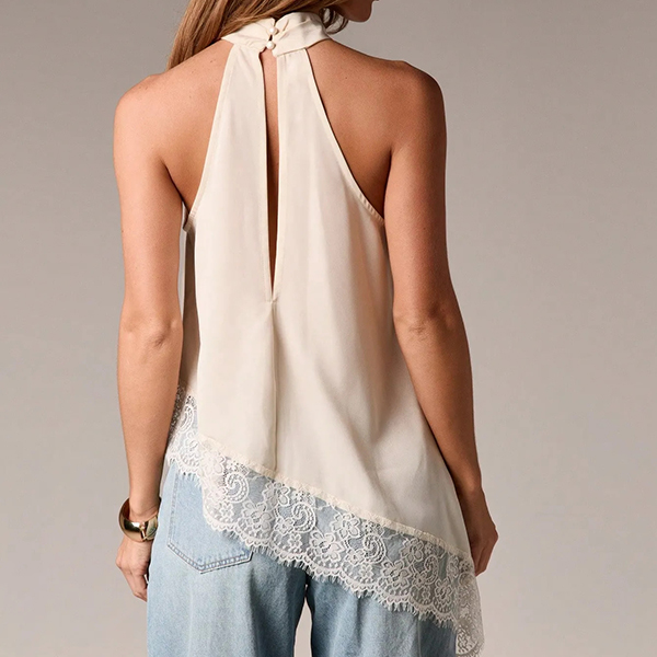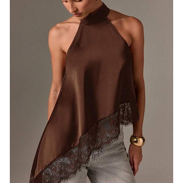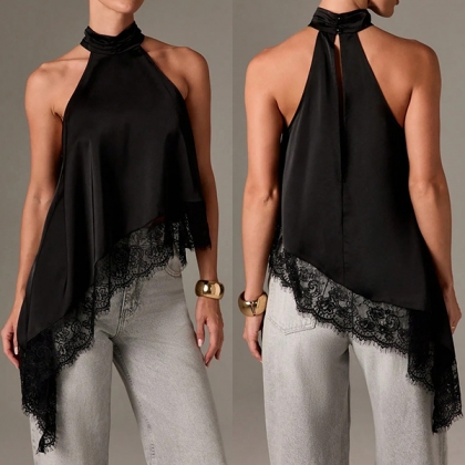 This shirt features contemporary fashion styling with elegant halterneck construction and delicate lace splicing for modern feminine sophistication. And the irregular hemline provides artistic movement with dynamic edge whilst the shirt construction offers versatile comfort and seasonal styling. Perfect for daily wear.