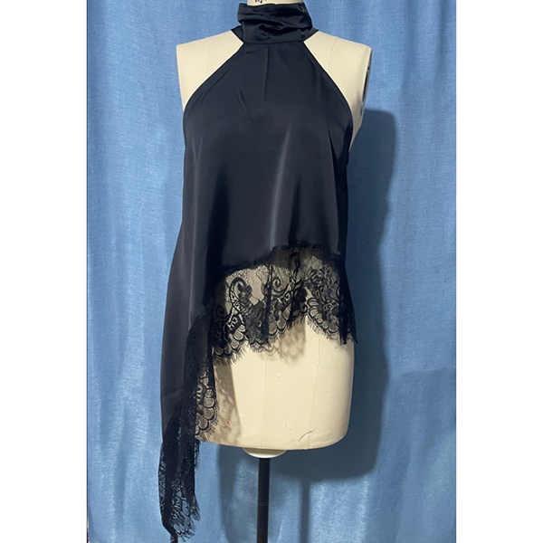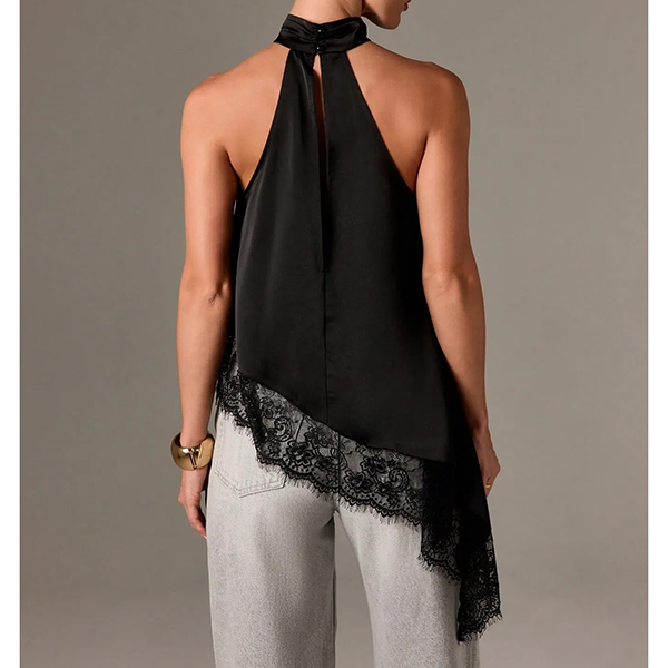 Fashion Halterneck Lace Spliced Irregular Hemline Shirt