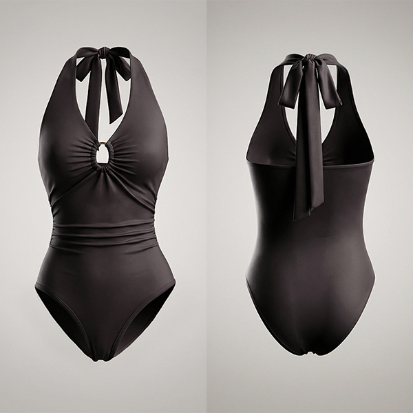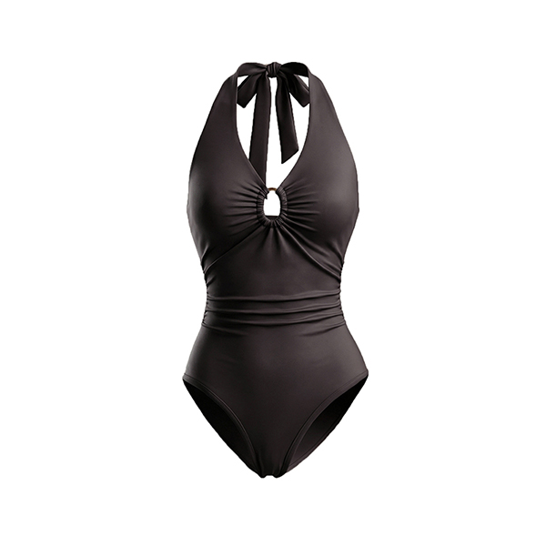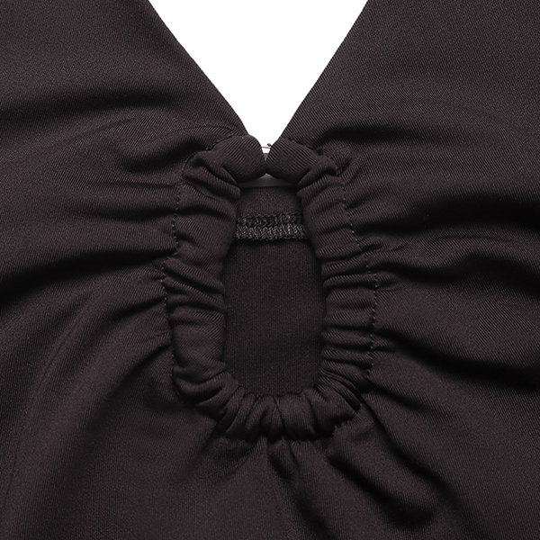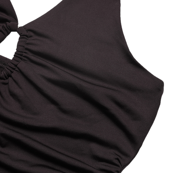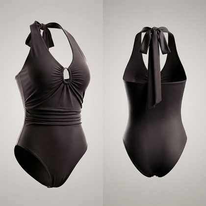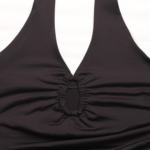 Fashion Halterneck O-ring Sleeveless Ruched Slim-fit Bodysuit