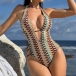 Fashion Halterneck Plunge V-neck Wavy Pattern Monokini