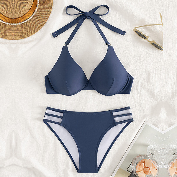 Fashion Halterneck Side Cutout Two-piece Bikini Set