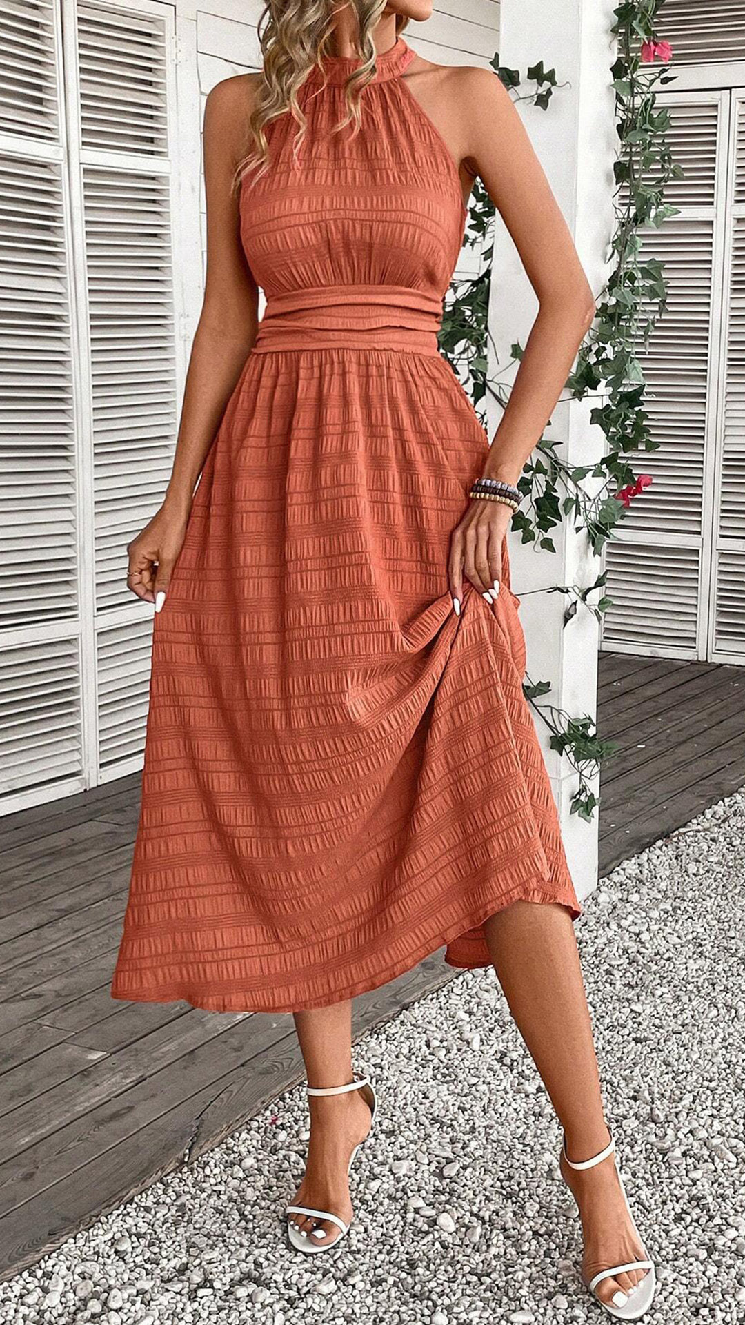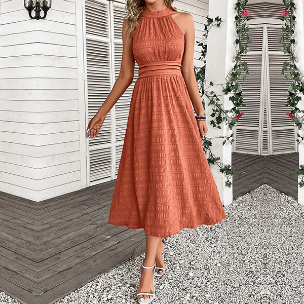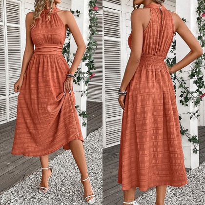 Fashion Halterneck Sleeveless High-rise Midi Dress