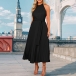 Fashion Halterneck Sleeveless Self-tie High-rise Pleated Dress