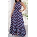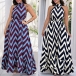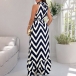 Fashion Halterneck Sleeveless Self-tie High-rise Wave Printed Maxi Dress