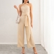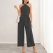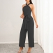 Fashion Halterneck Sleeveless Straight-cut Self-tie Strappy Jumpsuit