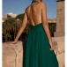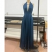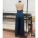 This jumpsuit features modern halterneck styling with elegant V-neck construction and flattering high-rise design for contemporary sleek elegance. Perfect for party wear.