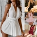 Fashion Halterneck V-neck Lace Spliced Backless Nightwear