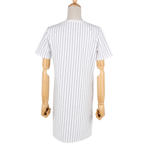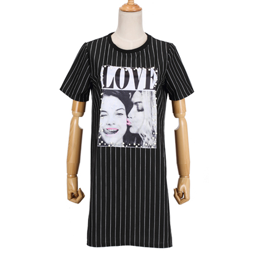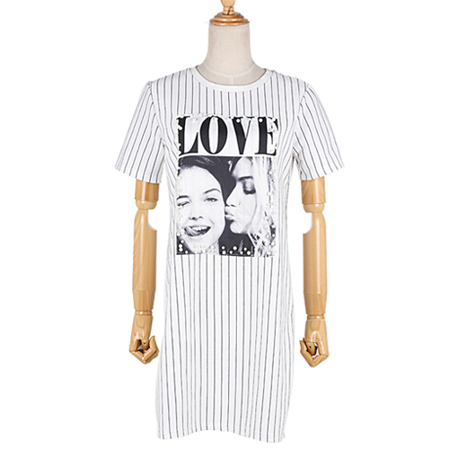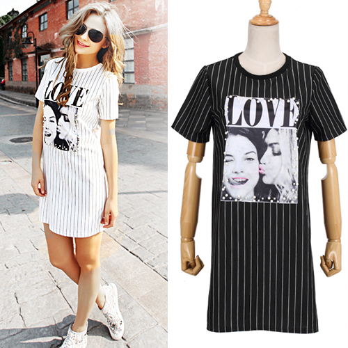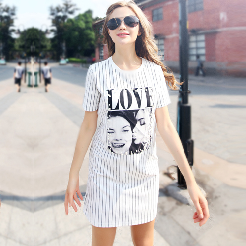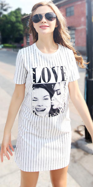 Such a chic and simple dress! Striped style,with short sleeve,round neck and chic print design.
