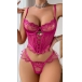 Fashion Heart Embroidered Lace-up Ruffle Semi-through Two-piece Lingerie Set