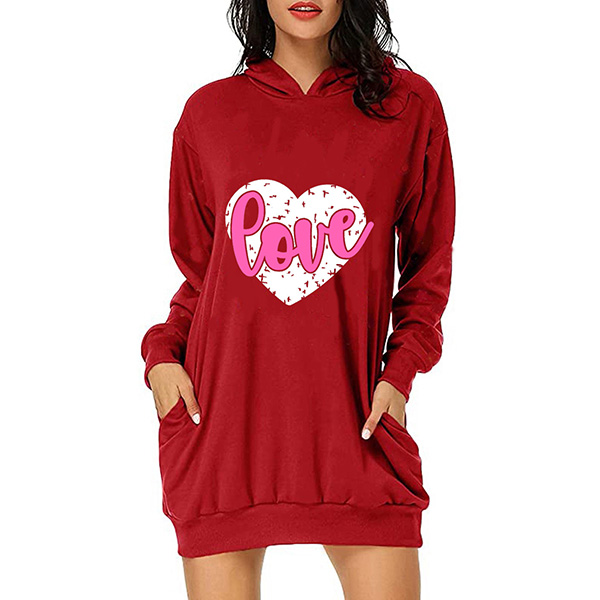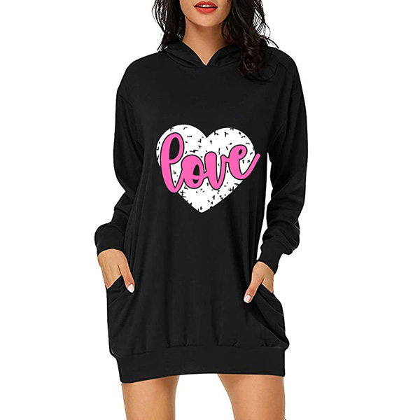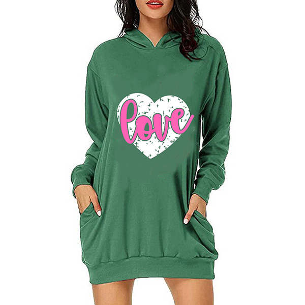 Fashion Heart Letters Printed Long Sleeve Hooded Sweatshirt Dress