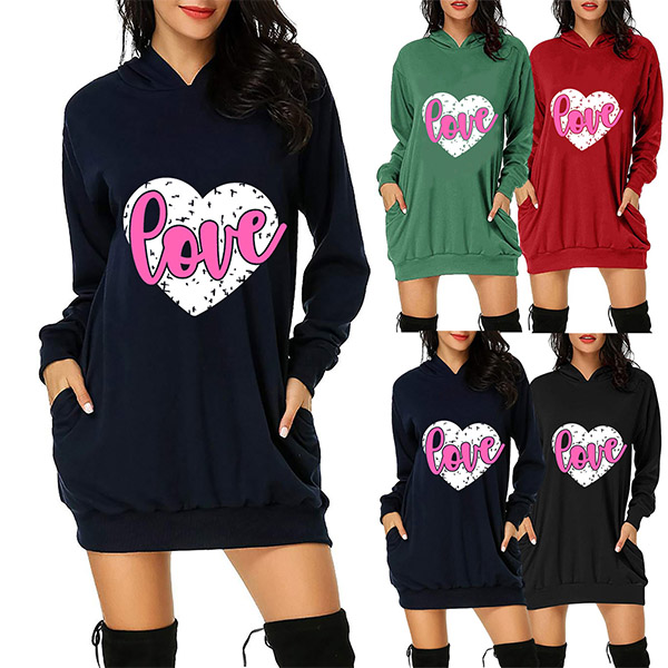 As for a simple,la-d-back yet fashionable autumn look,you can just have a try this sweatshirt dress. The heart pattern and letters printed design will enrich the design style. Crafted from soft and breathable fabric,with long sleeve and hooded silhouette,this piece can ensure you a comfortable day. You can match it with your casual flat shoes to enjoy your days.