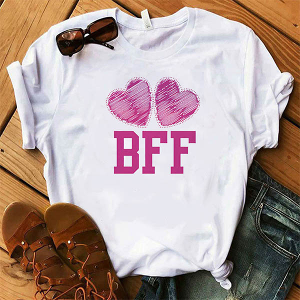 When you have some dating like weekend out orholiday trips with your besties,you can wear this t-shirt with them together toflaunt off your friendship. The heart pattern and letters printed details makeit look more playful and stylish,while its soft and breathable fabric canensure you a comfortable day. So why not have one for your besties andyourself?