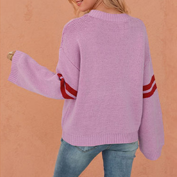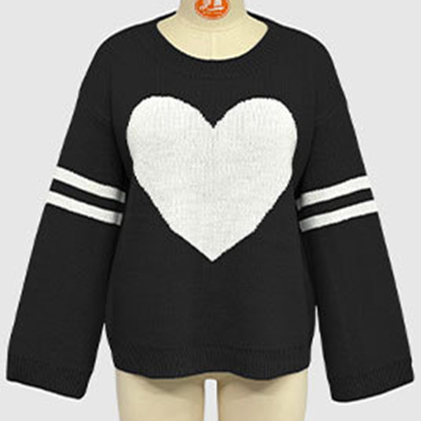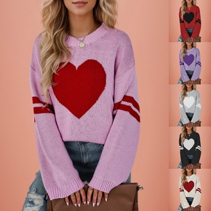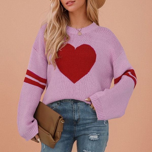 Fashion Heart Pattern Crew Neck Long Sleeve Sweater