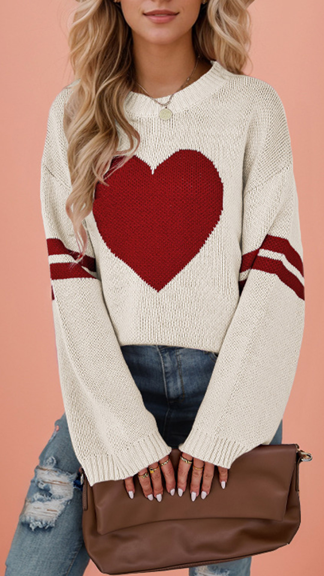 Add a touch of sweetness to your wardrobe with this fashionable sweater. The heart pattern adds a playful and romantic touch to the classic crew neck sweater, perfect for adding a pop of personality to your outfit. Pair this sweater with jeans and sneakers for a casual and fun look~