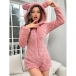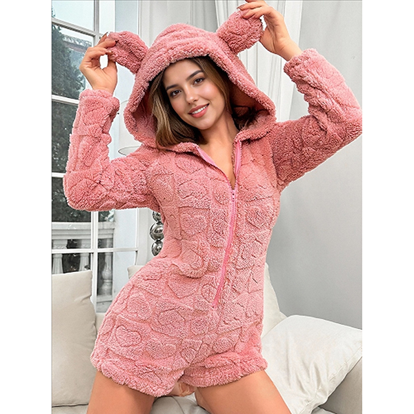 Fashion Heart Pattern Front Zipper Long Sleeve Hooded Plush Romper