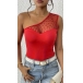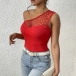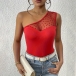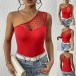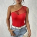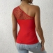 Fashion Heart Pattern Gauze Spliced One-shoulder Red Shirt