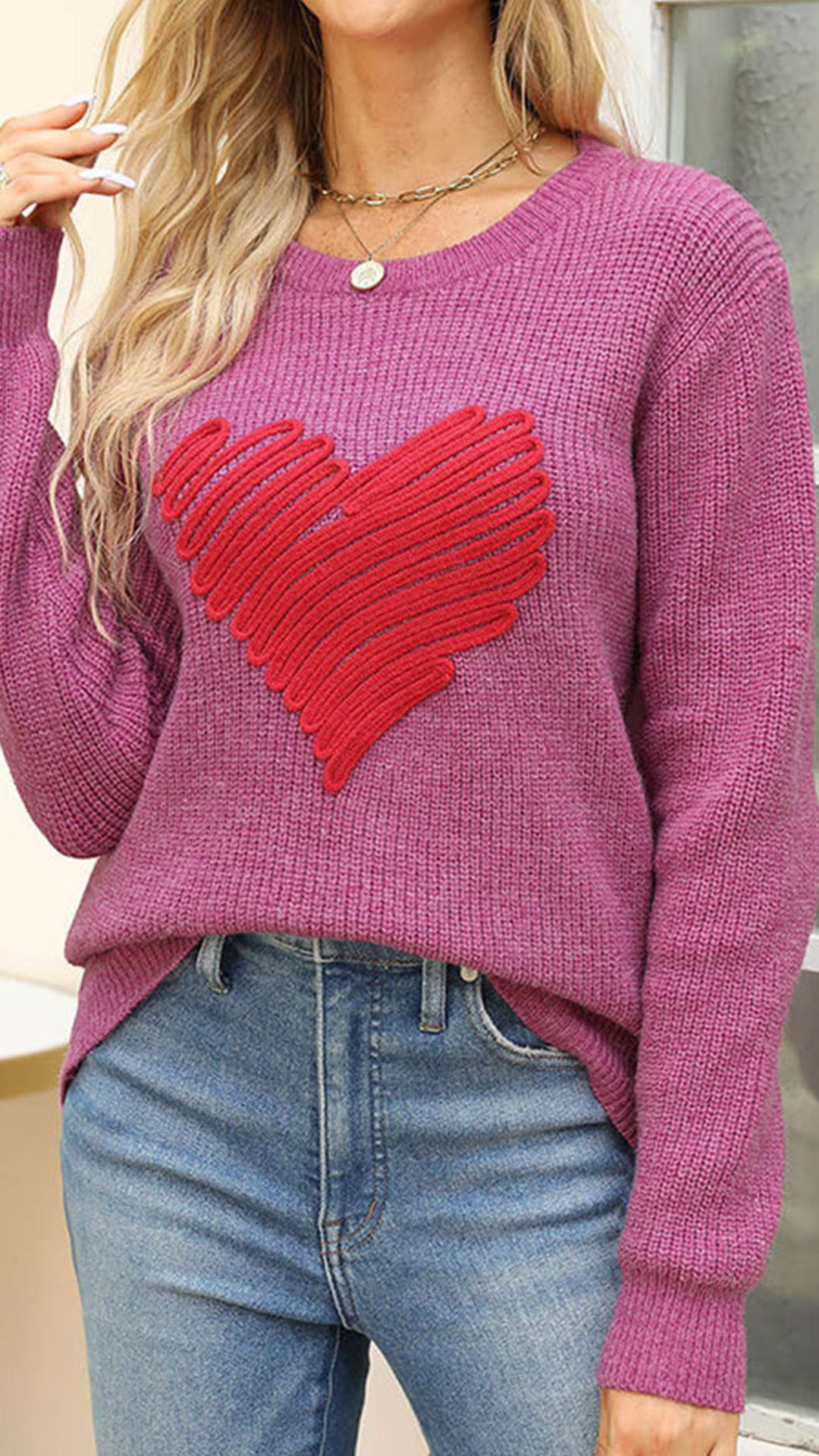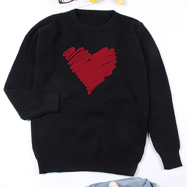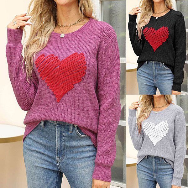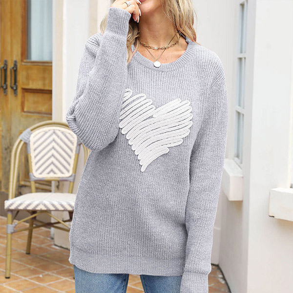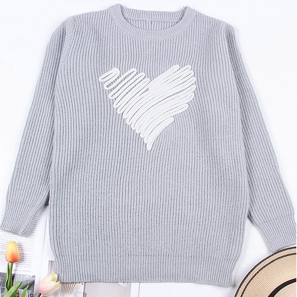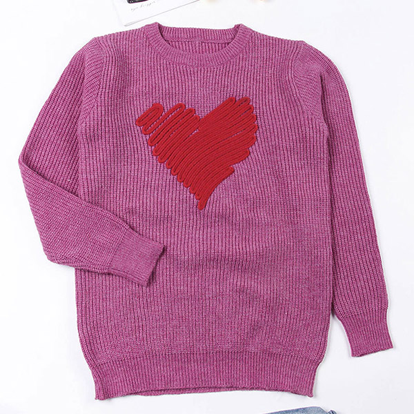 Fashion Heart Pattern Round Neck Long Sleeve Knitted Sweater