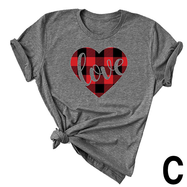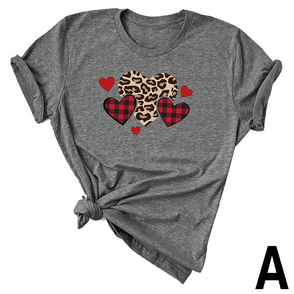 Fashion Heart Pattern Short Sleeve Round Neck T-shirt