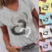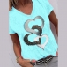 Fashion Heart Pattern Short Sleeve V-neck T-shirt