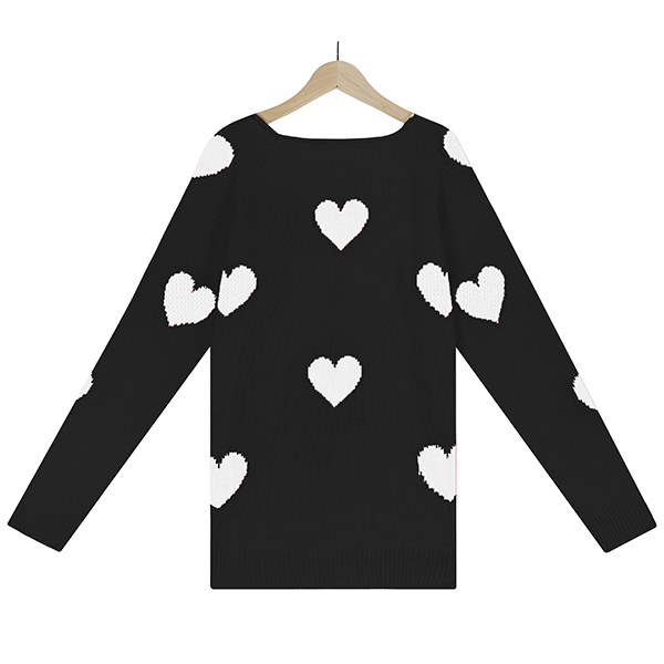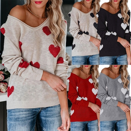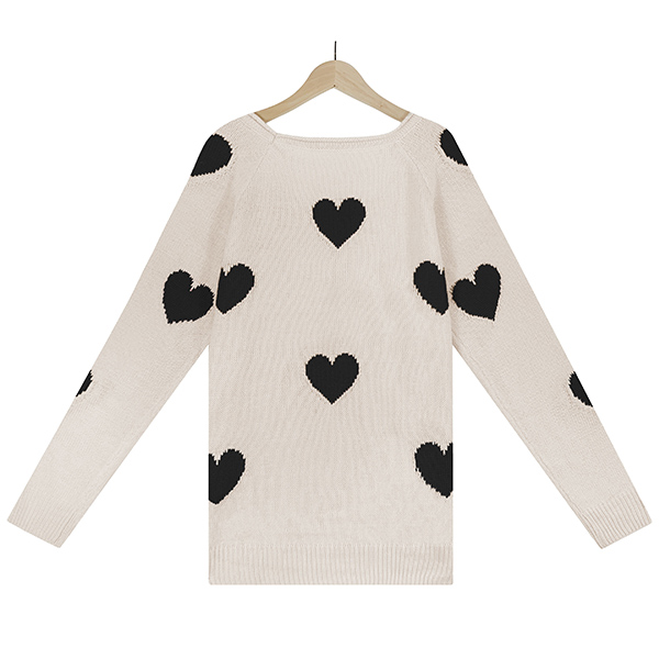 Fashion Heart Pattern V-neck Long Sleeve Pullover Sweater