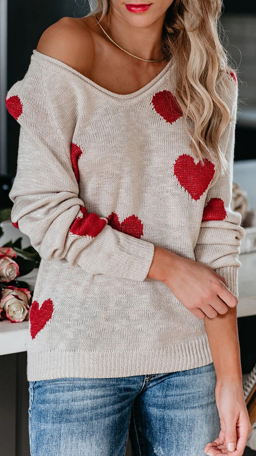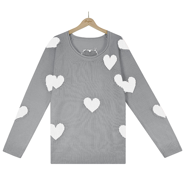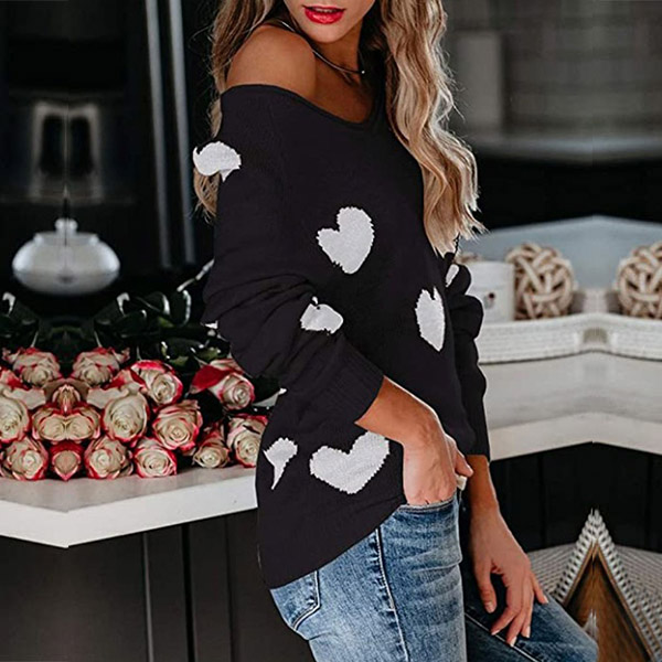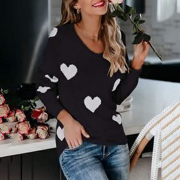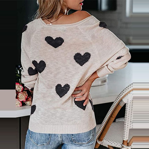This heart pattern Sweater is perfect for a casual day out or to dress up for a night on the town. The v-neck style is both flattering and comfortable, while the long sleeves keep you warm all day long. The heart pattern is both unique and stylish, making this sweater a must-have in your wardrobe.