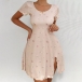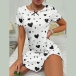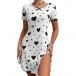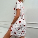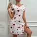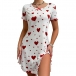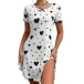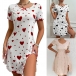 Fashion Heart Printed Bowknot Crew Neck Short Sleeve Side Slit Nightwear Dress