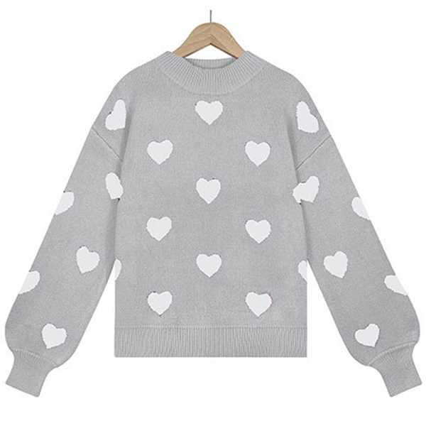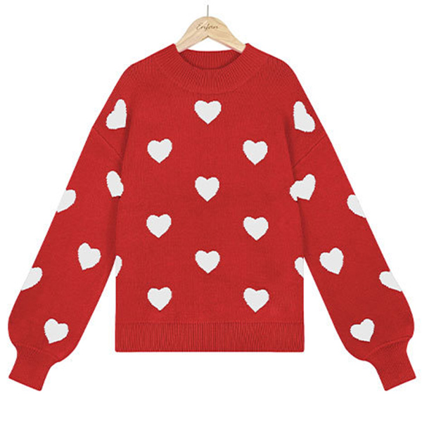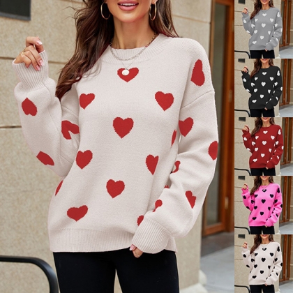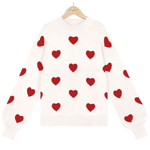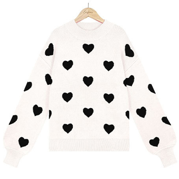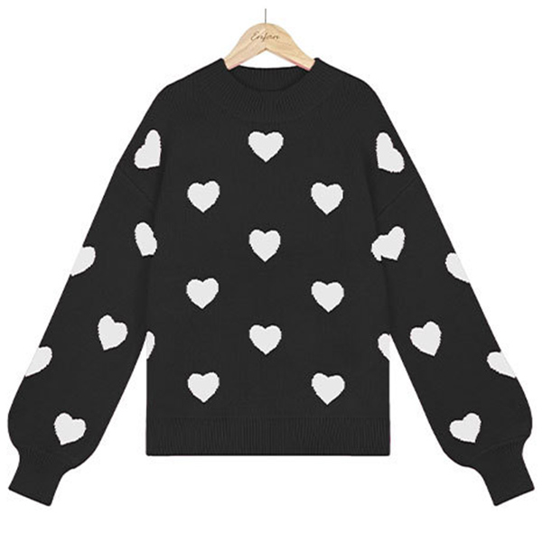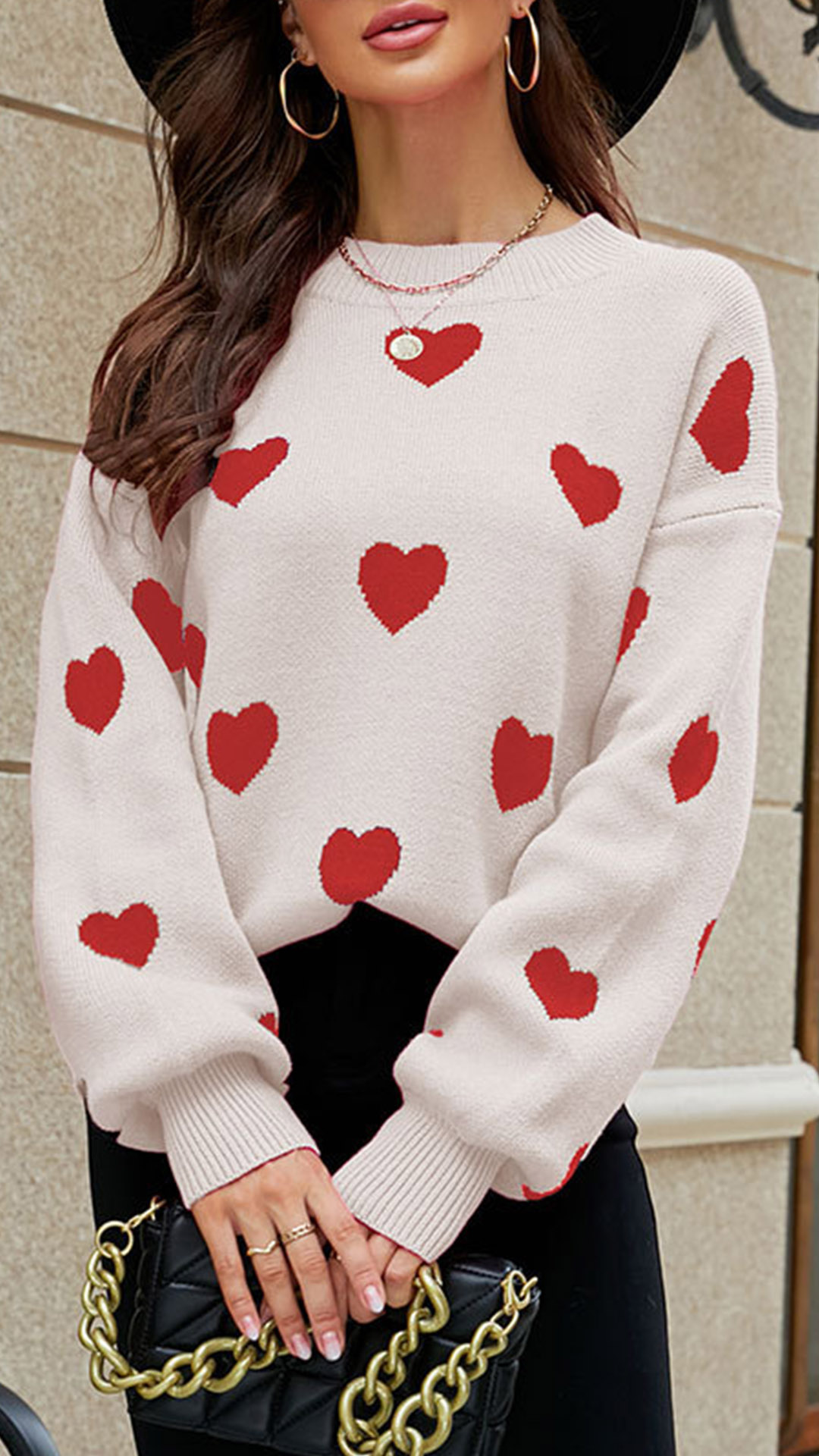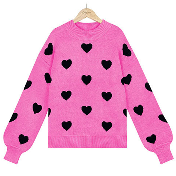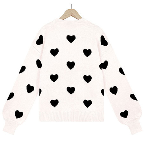 Add a touch of sweetness to your wardrobe with this fashionable sweater. The heart print design adds a playful and charming element to the sweater, perfect for adding a pop of personality to your outfit. This sweater can be styled with jeans for a casual and cozy look, or dressed up with a skirt and boots for a more polished ensemble. Hope you like it.