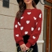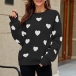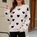 Fashion Heart Printed Crew Neck Long Sleeve Sweater
