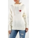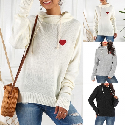 Stay cozy and stylish in this Sweater. This cute sweater features a heart print design that adds a touch of charm and whimsy to your outfit. The drawstring hood adds a casual and laid-back vibe, perfect for lounging or running errands in style.