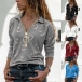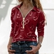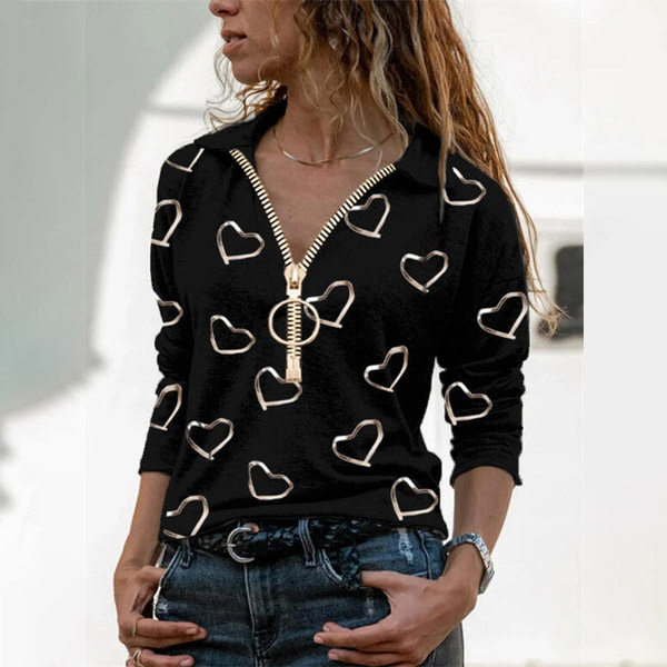 Fashion Heart Printed Long Sleeve POLO Collar T-shirt