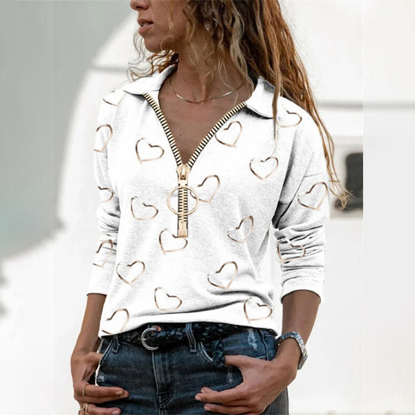 A perfect combination of cozy and stylish vibes,this t-shirt is worth to have a place in your wardrobe. The heart printed pattern design will lend you a dash of sweet and romantic vibes. Crafted from soft and breathable fabric,with long sleeve and POLO collar design,this t-shirt is perfect fit for your casual days and weekends.