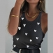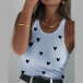 Fashion Heart Printed Round Neck Slim Fit Tank Top