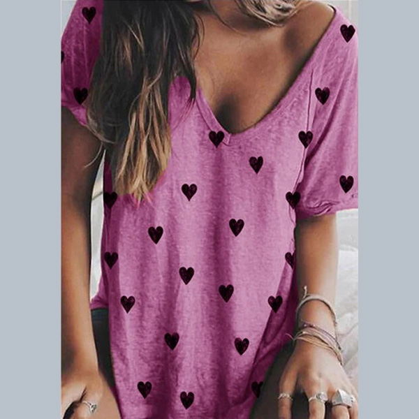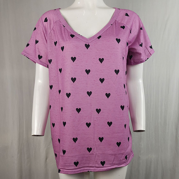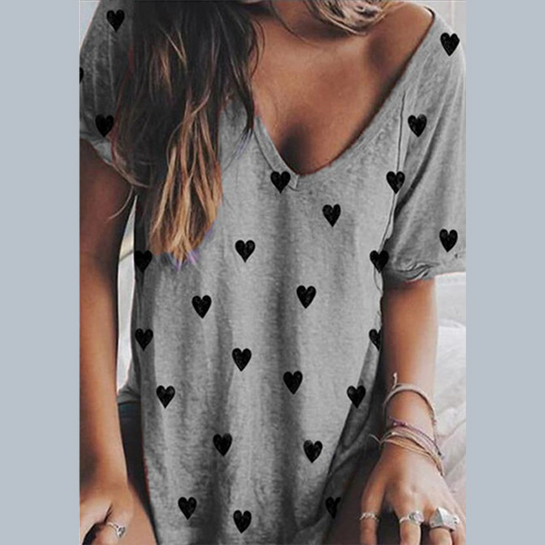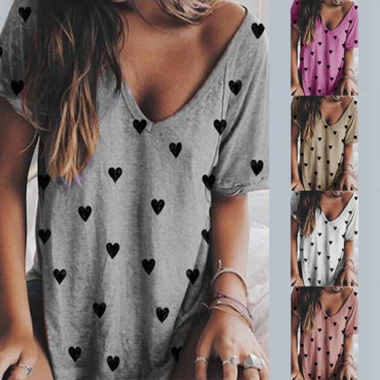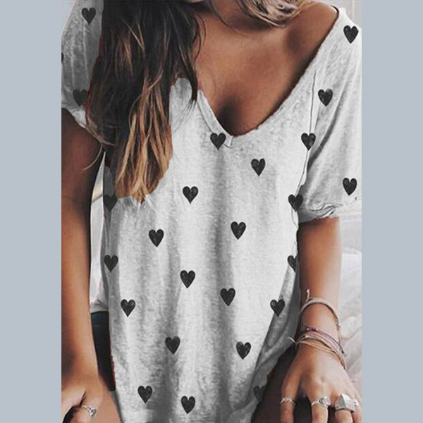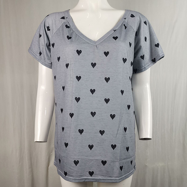 Fashion Heart Printed Short Sleeve V-neck T-shirt