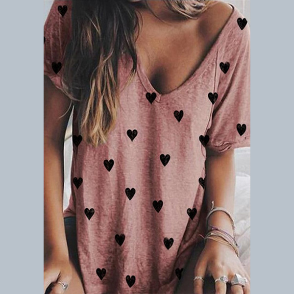 This t-shirt is crafted from soft and breathable fabric,with short sleeve and v-neck design,which can ensure you a comfortable day,while the heart printed details will make this piece look more attractive. No matter matching with a shorts,skirt,or jeans,you can achieve for a laid-back yet fashionable daily look.