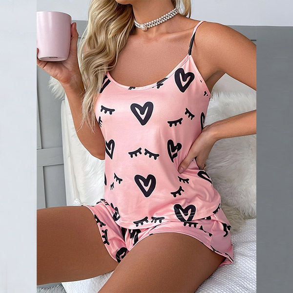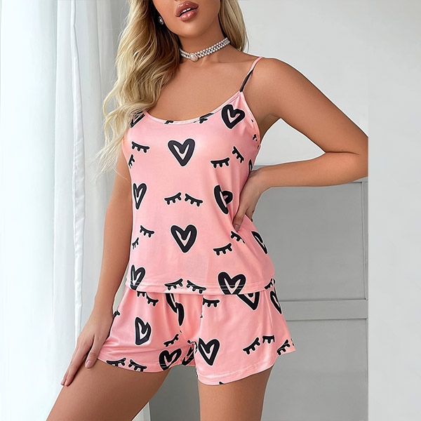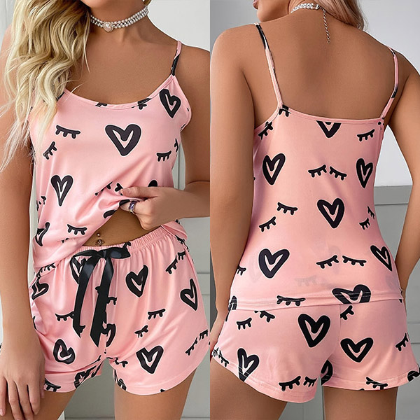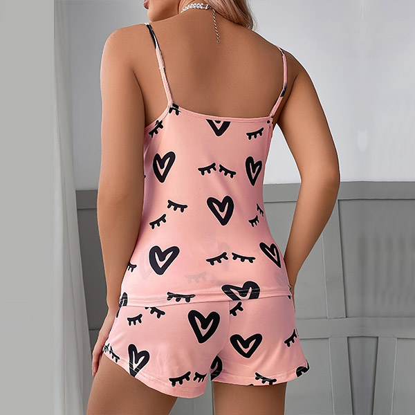 Fashion Heart Printed Two-piece Pajamas Set