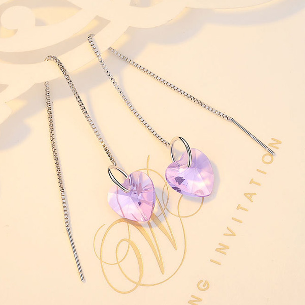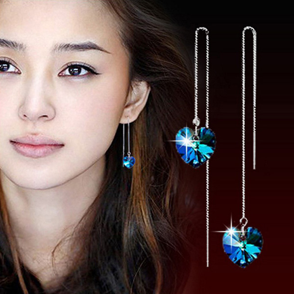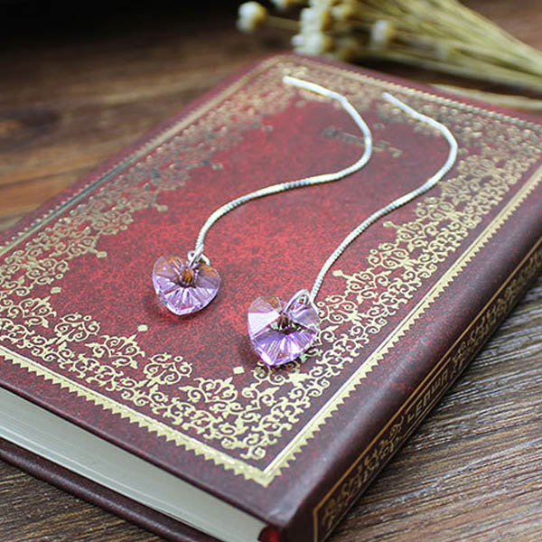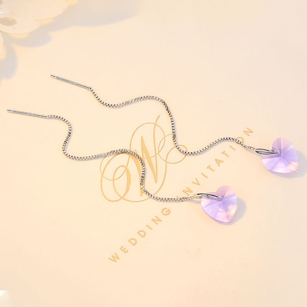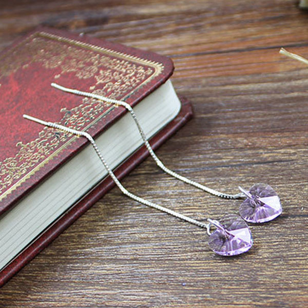 Finish a more delicate and charming look by adding this pair of earrings. It is decorated with a heart shaped rhinestone pendant,sweet and shinning. You can trust in this pair of long tassel design to boost your entire charm.