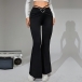 Fashion Heart-ring Self-tie Ruched Wide-leg Pants