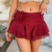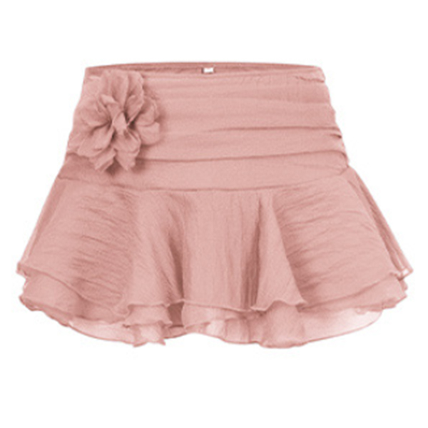 Fashion High-rise 3D Rose Ruffle Mini Skorts