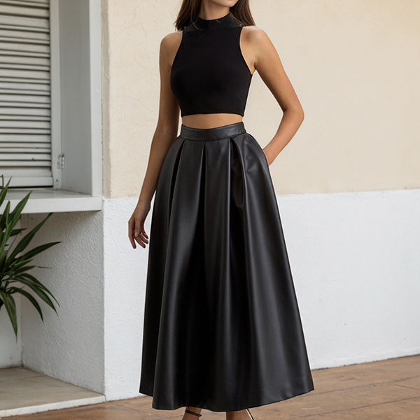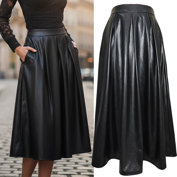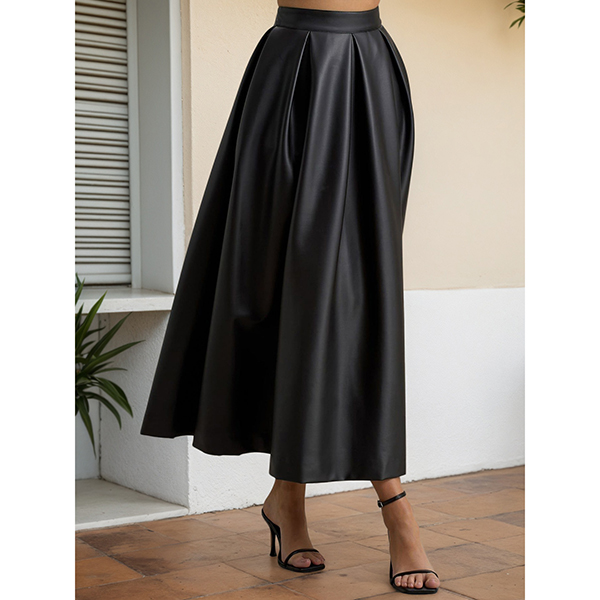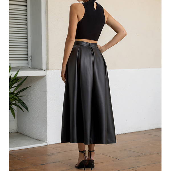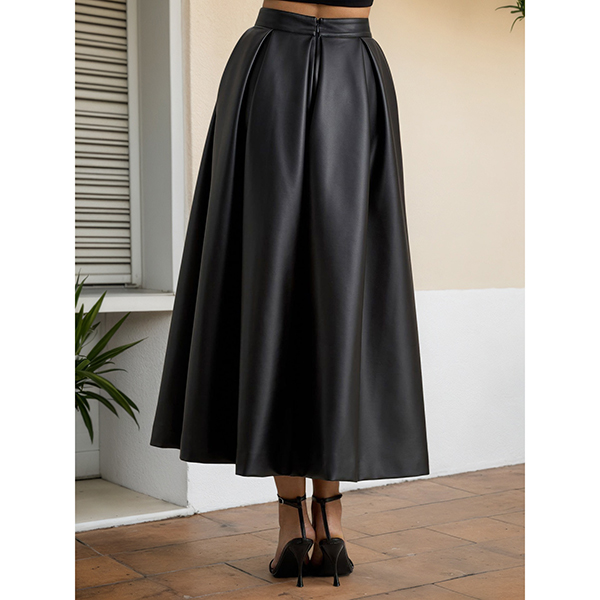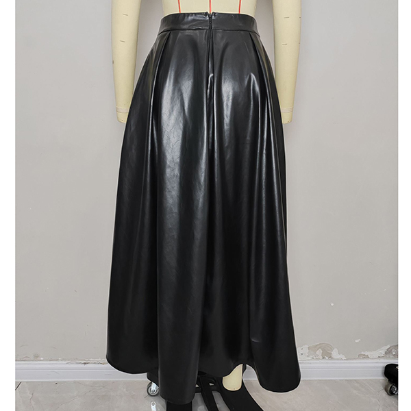 This contemporary piece merges edgy material choice with classic feminine silhouette for modern sophisticated appeal. The artificial leather PU construction delivers sleek surface texture and contemporary attitude that elevates the traditional A-line shape, while the high-rise waistline creates defining structure and flattering proportions. Style it with soft blouses to create textural contrast against the structured leather, pair with fitted tops to balance the flowing A-line shape, or wear with casual pieces to add instant sophistication while maintaining the skirt's modern character through sleek material choice.