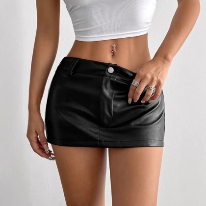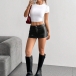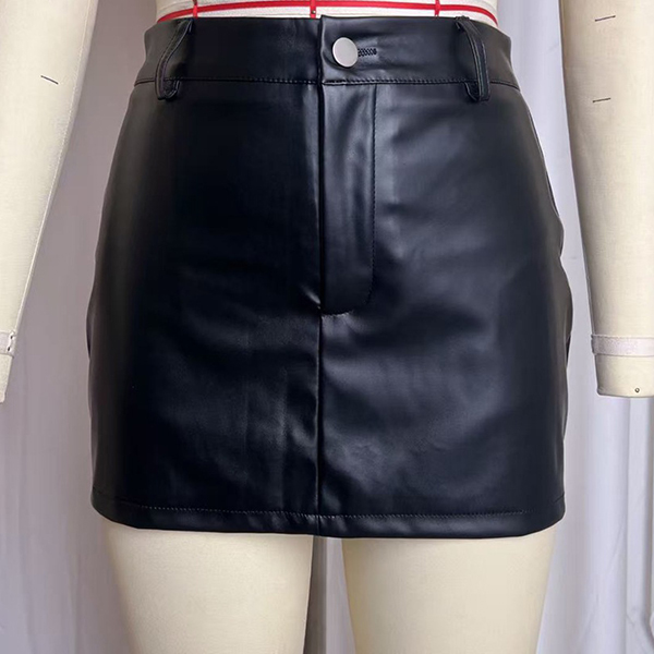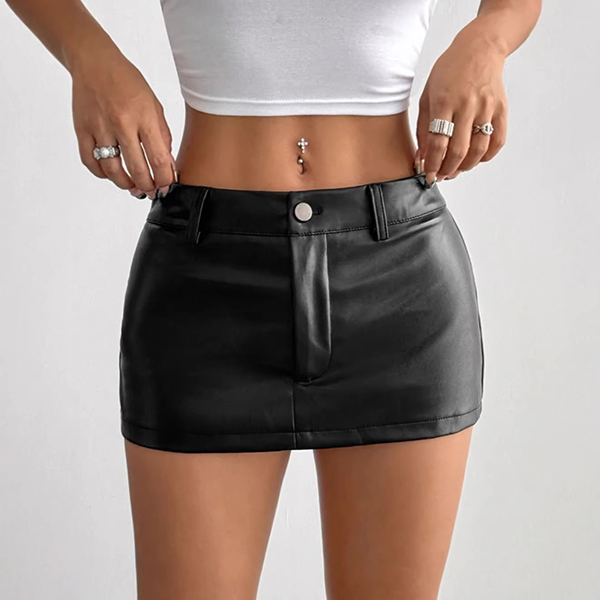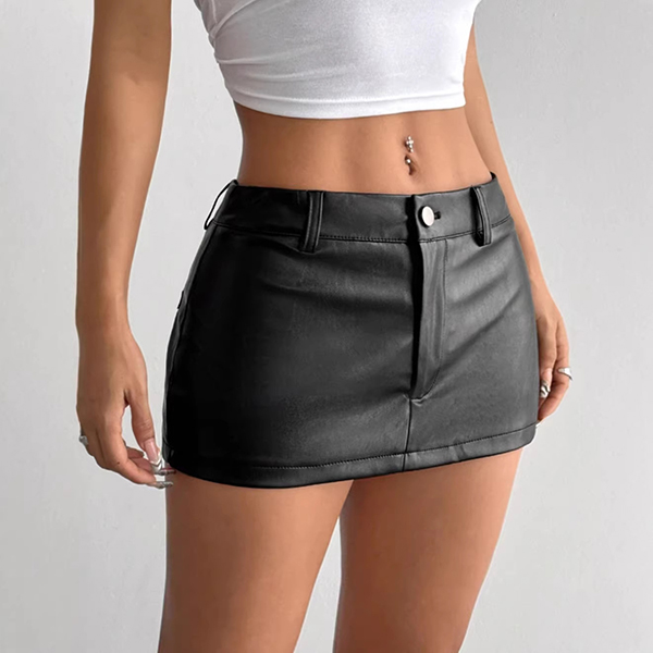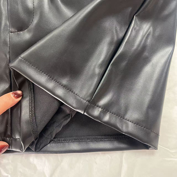 Fashion High-rise Artificial Leather PU Mini Skirt with Built-in Shorts