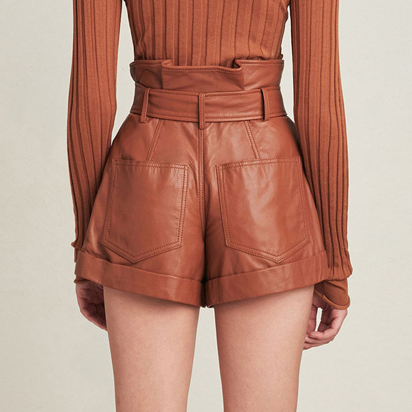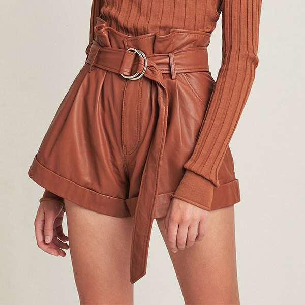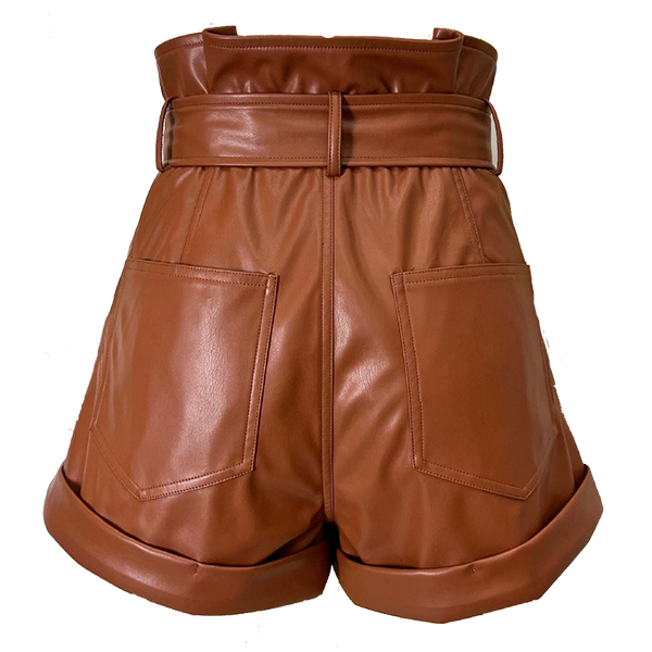 Fashion High-rise Artificial Leather PU Shorts with Belt