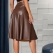 Elevate your wardrobe with this sleek and versatile skirt that brings modern edge to your everyday styling options. The high-rise waistline creates a flattering silhouette that accentuates your waist while elongating your legs, giving you that confident, put-together feeling every time you wear it. The leather-look material adds just enough edge to prevent your outfits from feeling too safe or predictable, making it an essential piece for anyone who wants to inject some modern attitude into their wardrobe while maintaining versatility and sophistication.