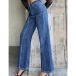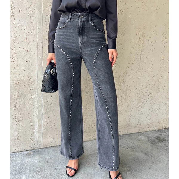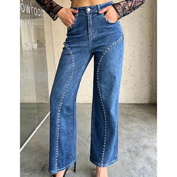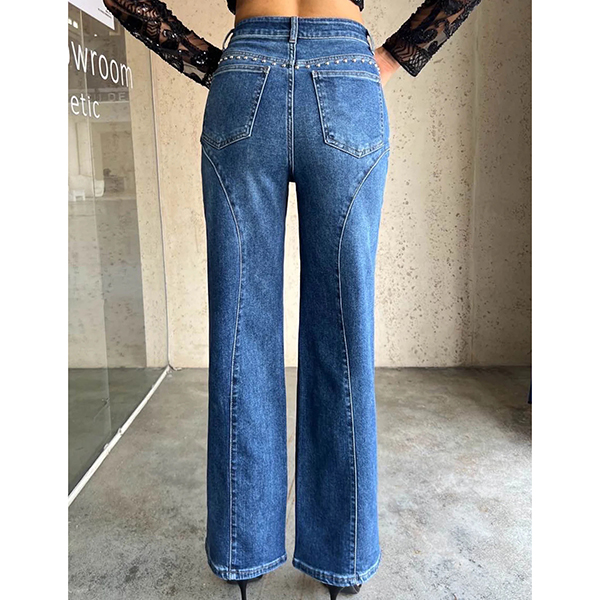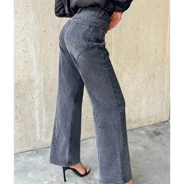 Fashion High-rise Bead Straight-cut Old-washed Denim Jeans